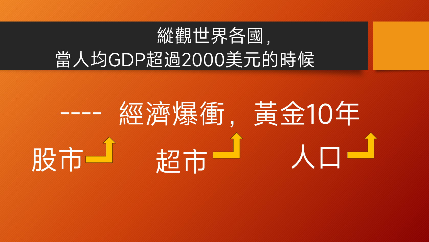 纵观全球,人均GDP达到2000美元意味经济腾飞