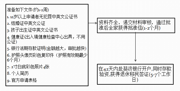 斐济退休移民即保障收入移民,就是申请人要在国外有一定的收入,移民来斐济是消费的,也就是说保障收入移民在斐济不能工作,不能做生意,国外赚钱,斐济消费;主申请人的配偶与子女可以随行。保障收入移民一经批准,首次给予6 个月签证,申请人需在6 个月内到斐济办理税号,开银行账户,并且将国外资金转到斐济申请验资,验资完成后,移民局会给予18 个月的签证,满三年后再续签三年,10 年累计住满5 年可申请入籍。